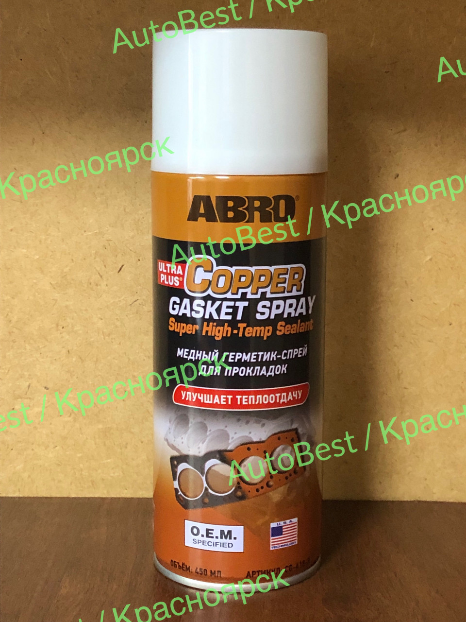 CG-318-200-AM-RE / Медный герметик-спрей для прокладок "ABRO" CG-318-200-AM-RE (200мл)